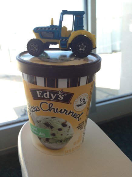 Tractor on my ice cream at the airport.