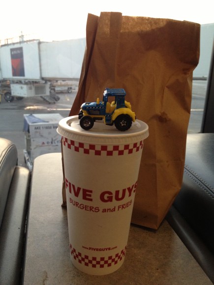 Five Guys, tractor and fries.